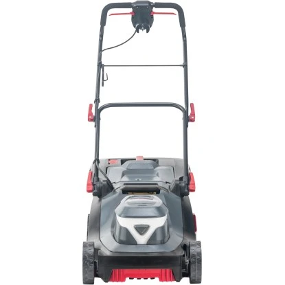 Für höchsten Fahrkomfort sorgt der angenehme Doppelschalter, welcher am ergonomisch geformten Holm mit Softgriff angebracht ist. Durch die XXL-Hinterräder haben Sie beim Mähen eine bessere Traktion. Der Mäher ist mit 38 cm Schnittbreite und seiner 45 l Gewebefangbox für bis zu 500 m² Rasenflächen geeignet. Dank aerodynamischer Gehäuseform und großer Öffnung wird das Schnittgut optimal gefangen und der kompakte Grasfangkorb effizient gefüllt. Zudem erleichtert Ihnen die Fangbox mit Füllstandsanzeige und Tragegriff zum einfachen Entleeren das Arbeiten. Der vollständig klappbare Holm sorgt für eine platzsparende Aufbewahrung. Darüber hinaus kann er für geringeren Platzbedarf und zur leichteren Reinigung senkrecht gelagert werden.