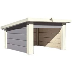 Mit dieser Mährobotergarage aus 19 mm starken Wandbrettern und einem Pultdach aus hochwertigem Massivholz wird Ihr Mäher effektiv vor Witterungseinflüssen geschützt, sodass Sie länger Freude am Produkt haben. Die hochsensible Technik der Mäher ist zwar für den Außeneinsatz geeignet und auch nach verschiedenen Zertifizierungen wasserdicht / -abweisend, jedoch wird die Lebenserwartung des kleinen Helferleins deutlich verlängert, wenn Sie ihm ein schützendes Dach über dem Kopf bereit stellen, wenn er gerade nicht für Sie arbeitet. Mit dem Innenmaß von 65 cm x 69 cm und einer vorderen Öffnung von 60 cm x 35 cm bietet er nahezu jedem Mähroboter und der Ladestation ausreichend Platz. Für einen vernünftigen Ablauf des Wassers sorgt das Dach mit einer 7° messenden Neigung. Die Wandbretter nordische Fichte sind aussen terragrau, Abschlußleisten aussen in elfenbeinweiß, Dach und Rest naturbelassen. Steck- und Schraubsystem.