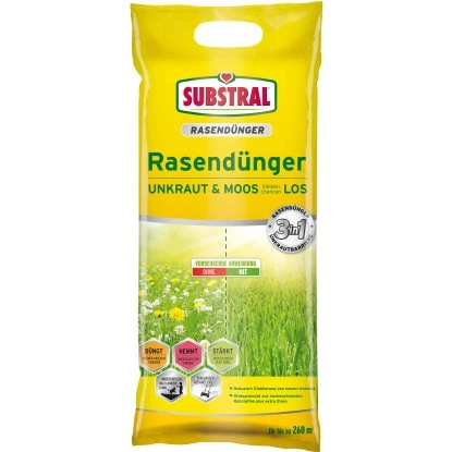 Der Substral Rasendünger Unkraut und Moos Bleibt ChancenLOS fördert das Rasenwachstum und verstärkt die Grünfärbung innerhalb von zwei Wochen. Der Dünger nutzt eine pflanzliche Technologie und wird aus nachwachsenden Rohstoffen plus Eisen hergestellt. Aufgrund seiner natürlichen Eigenschaften ist er zusätzlich in der Lage die Ansiedlung von Rasen-Unkräutern zu hemmen und macht den Rasen konkurrenzstark gegen Moos. Vorbeugend angewendet, wird die Ansiedlung von neuen Unkräutern reduziert. Bereits vorhandenes Unkraut wird weder gehemmt noch bekämpft.