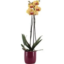 Schmetterlingsorchidee 2-Trieber Gelb Im Keramik-Gefäß Topf-Ø Ca. 9 Cm